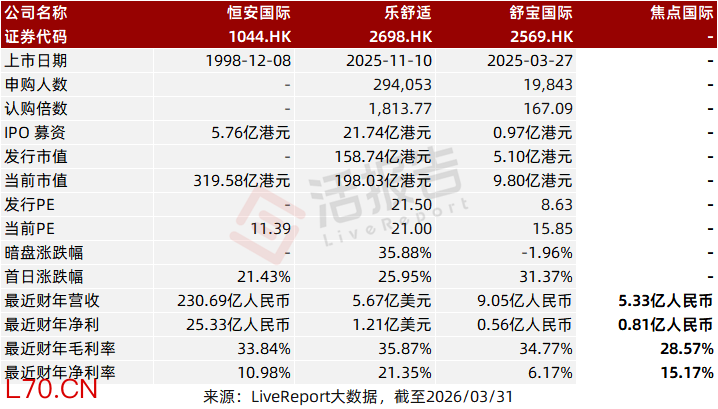 同行业IPO可比公司:恒安国际(1044.HK)、乐舒适(2698.HK)、舒宝国际(2569.HK)