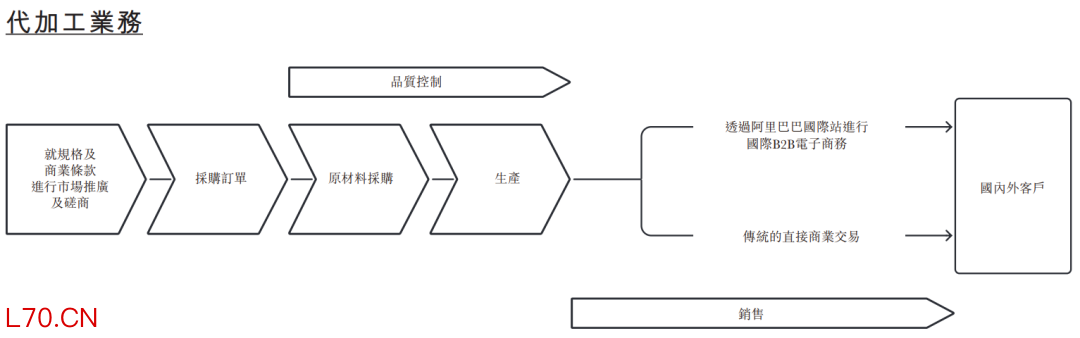于往绩记录期间,公司的代加工业务为中国及国际品牌拥有者提供制造服务,业务覆盖中国及国际,客户遍布多个国家及地区,主要位于东南亚(如马来西亚及越南)。