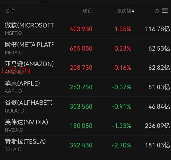 美股科技“七巨头”涨跌不一。微软、脸书、亚马逊收涨1.35%、0.23%、0.16%,特斯拉跌超2%新手配资教程,英伟达跌超1%。