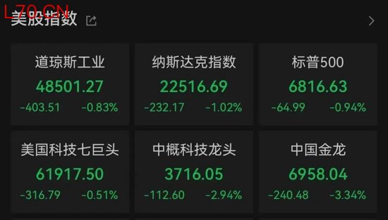 美东时间3月3日(周二),美股延续调整,三大指数盘中均跌超2%,直至收盘,跌幅收窄。截至收盘,道琼斯工业指数下跌0.83%,纳斯达克指数下跌1.02%,标普500指数下跌0.94%。