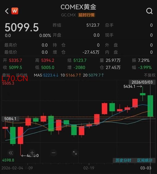 COMEX黄金期货指数日内跌幅接近4%,美元指数上涨。美股有色板块承压,多只黄金股跌幅居前,盎格鲁黄金跌超10%,皇家黄金跌超8%。