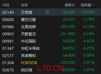 3月26日消息,港股三大指数低开低走。截至午间收盘,恒生指数跌1.37%,报24988.04点,恒生科技指数跌2.15%,国企指数跌1.52%。盘面上,科网股跌多涨少,快手跌超13%,阿里巴巴、美团跌超3%,网易、哔哩哔哩、百度跌超1%,京东、小米涨超1%;半导体板块下挫,贝克微跌超10%;黄金股走弱,珠峰黄金跌超5%;保险股跌幅居前,中国人寿跌超7%。
