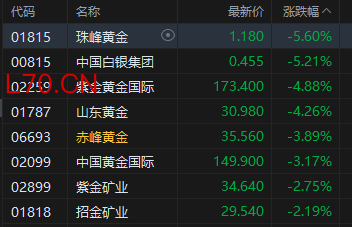 黄金股走弱,珠峰黄金跌超5%。亚洲早盘,现货黄金一度失守4500美元/盎司。华西证券指出,黄金波动率已显著放大,仍需严控仓位。黄金隐含波动率自上周四起连续攀升至35,处于2009年以来99.4%的历史极高分位水平。