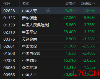 保险股跌幅居前,中国人寿跌超7%。中国人寿昨晚发布2025年年报,虽然全年利润增长44%,但第四季度单季亏损137亿元,远低于市场预期,直接引发抛售。华泰证券指出,中国人寿全年归母净利润1541亿元,低于此前预期的1718亿,主因投资波动,整体看业绩强劲增长。其中前三季度归母净利润1678亿,意味着4Q25出现少许亏损,或由于该季度投资波动和其他资产减值增加所致。经计算,4Q25单季亏损137亿元。