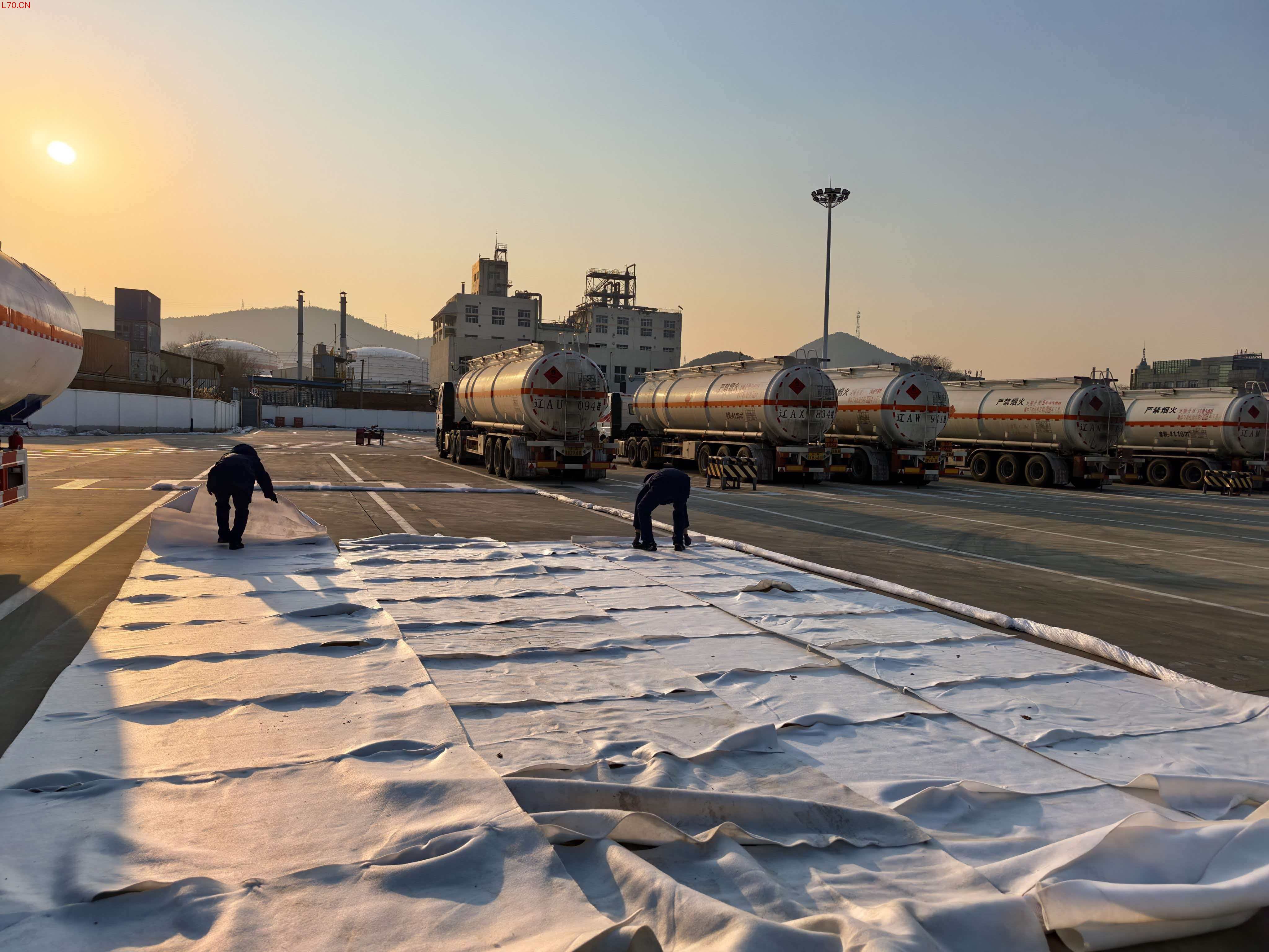 此次演练模拟在大孤山危化品停车场东南侧一辆柴油罐车管线发生泄漏,柴油在地面形成流淌火,同时有一名巡检人员因吸入油气,造成中毒昏迷,情况紧急。巡检人员发现情况后立即报告企业应急救援中心,中心第一时间启动危化品泄漏事故应急预案,并成立6个救援小组,要求全体救援人员5分钟内完成人员集结、器材装车,赶赴事故现场。警戒组到达现场后,立即设置警戒带,划定危险区域,疏导周边车辆和人员。探测组穿戴防化服,携带检测设备进入警戒区,检测到泄漏介质为柴油,浓度超标,扩散范围约50米,风向为北风,立即向指挥组汇报。医疗救护组在安全区域设立救护点,2名救援人员穿戴防护装备,将昏迷人员转移至救护点,实施吸氧、保暖、心肺复苏等急救措施。灭火组到达现场,启动泡沫炮,对流淌火进行覆盖灭火。120急救车到达现场,医疗救护组配合将伤员转运至医院。堵漏组穿戴重型防化服,携带低温专用堵漏工具,进入泄漏点区域;对破裂管线进行清理、打磨,使用堵漏胶和夹具实施紧急堵漏。堵漏完成后,侦检组再次检测,确认无泄漏,向指挥组汇报。围控组对现场泄漏的柴油进行回收,对救援人员防护装备、救援器材进行洗消处理,将洗消废水收集至防渗池,防止结冰污染环境。指挥组根据现场监测结果,确认事故隐患已消除,下达应急终止指令。各救援小组清点人员和器材,撤离现场,后勤保障组对现场进行清理和恢复,演练结束。